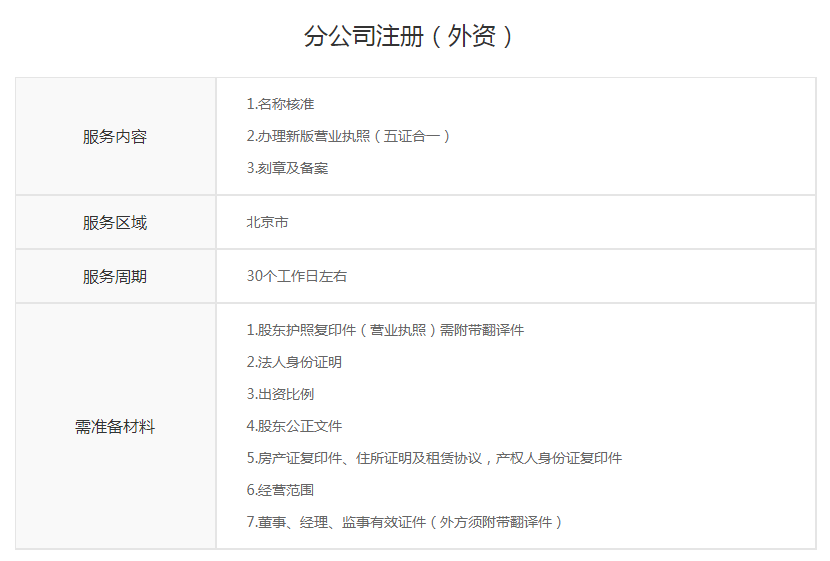 分公司注册(外资)